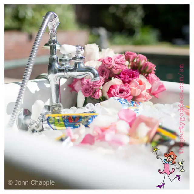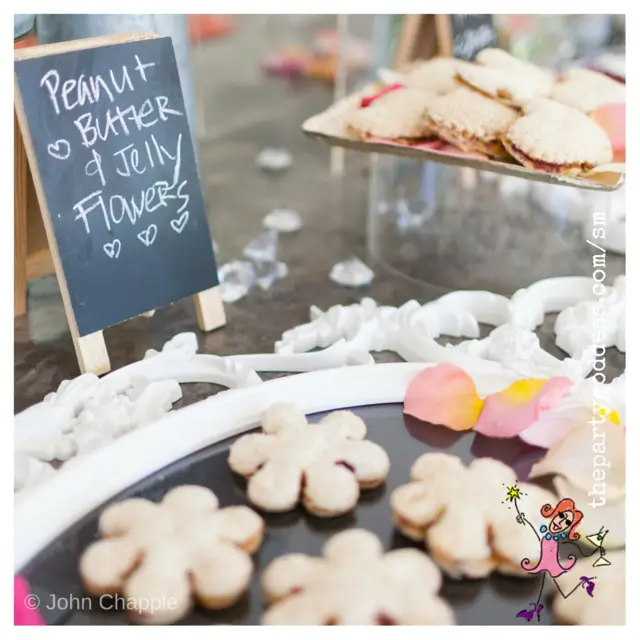 My girl wanted peanut butter and jelly shaped like flowers so she got ’em. I have to say, I really like the idea and there are a million ways you could go with them! I’m dying over the bathtub filled with ice, petals and of course little Juicy Juices!