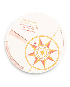 You can direct guests to your wedding with this fun compass-inspired card that helps them find reasons to attend: When they spin the bottom portion of the card, they’ll see all the activities they’ll be enjoying (dancing! feasting! toasting!). So adorable, right?