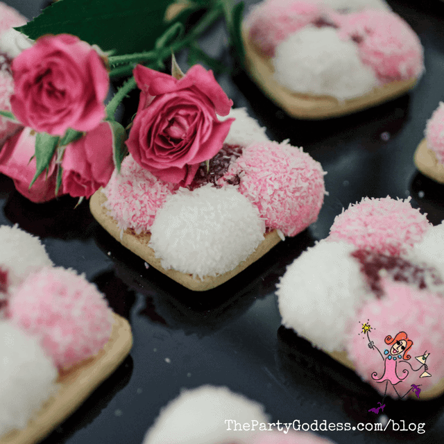 Here’s a shout-out to my Irish & English friends who miss those famous Mikado biscuits from their youth. Don’t know what they are? They’re soft biscuits with dainty little marshmallows, coconut & jam on top. These are a high-brow version… perfect with tea!