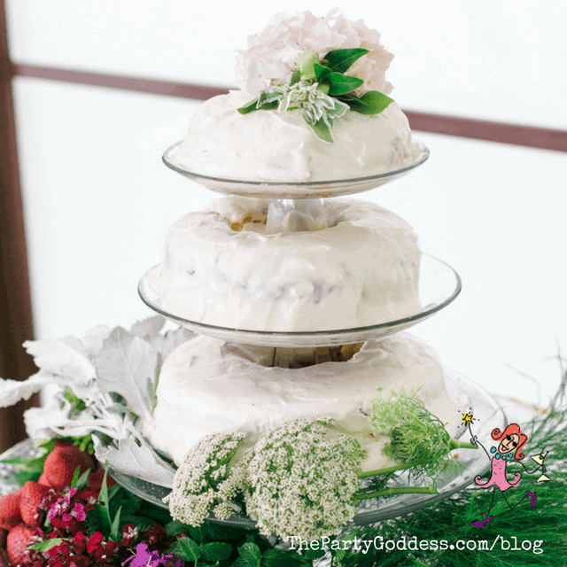 Who knew a tiered bundt cake could look so elegant? A homemade cake with generous “home style” frosting gets an instant style upgrade when it’s stacked and garnished with pretty blooms. Nothing homely about this cake! Happy #WeddingWednesday!