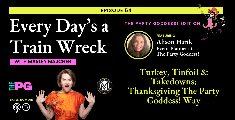 Thanksgiving is supposed to be cozy, delicious, and full of gratitude… not a full-contact stress sport. At The Party Goddess!, Marley Majcher and Alison Harik sat down on the podcast Every Day’s a Trainwreck to spill their favourite Thanksgiving hosting tips, potluck hacks, and “let’s-not-burn-the-turkey” reminders.